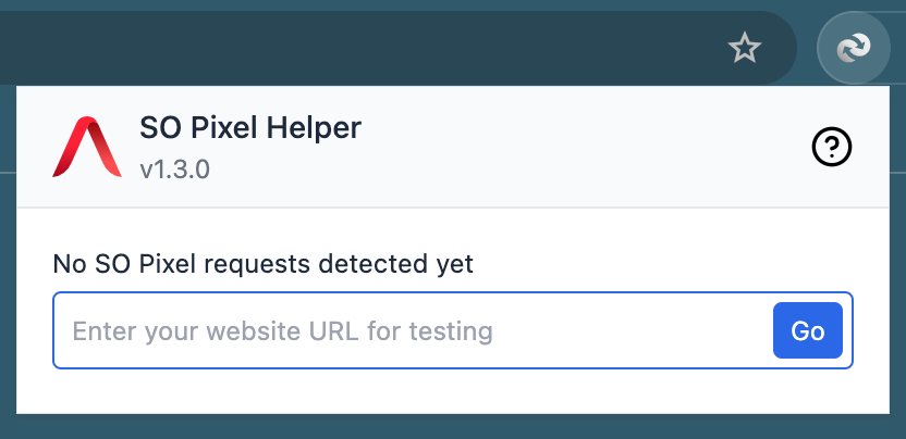 - If SO Pixel is not found or not correctly integrated on the website, the extension will display the following UI.