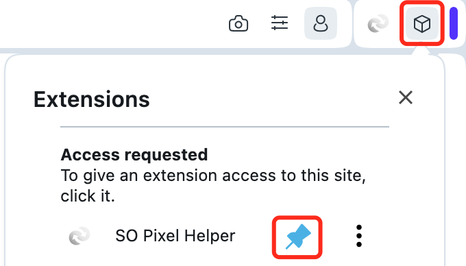 - Open the Opera or Chrome browser, and click on the SO Pixel Helper icon.